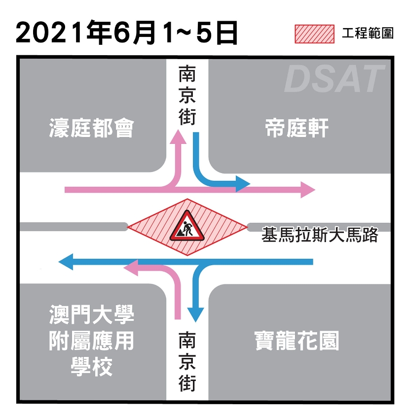 基马拉斯大马路重铺路面工程进入最后一个阶段,配合工程的开展,6月1日至5日(周二至周六),基马拉斯大马路与南京街交界禁止车辆通行。