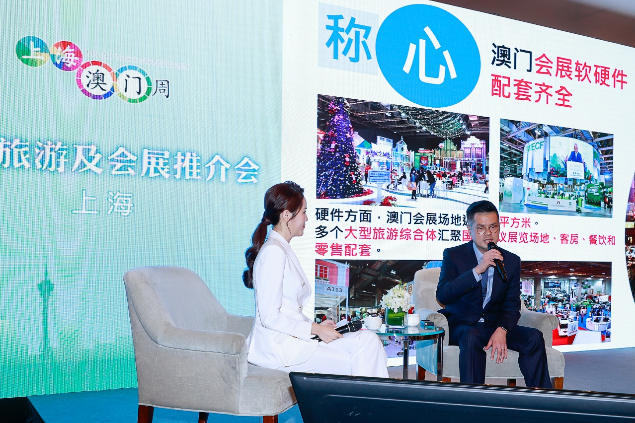 澳门特别行政区政府旅游局与贸易投资促进局先后于北京、杭州及江苏的澳门周举办“澳门旅游会展推介会”,两局今(4日)再度携同相关澳门业界在上海举办“上海澳门周 - 澳门旅游及会展推介会”,积极介绍澳门旅游业及会展业的优势,让两地业者交流洽商,并宣传澳门健康安全宜游的城市形象。