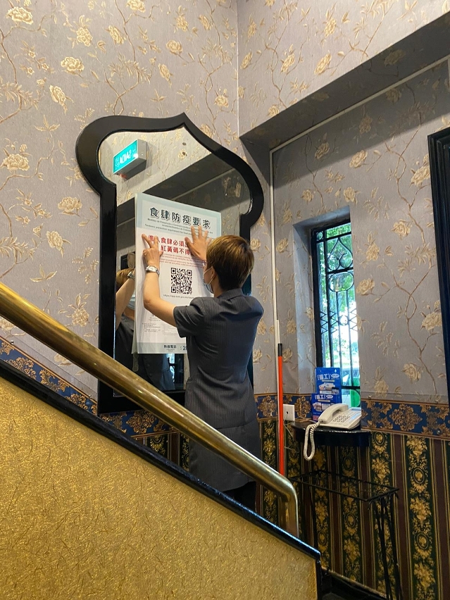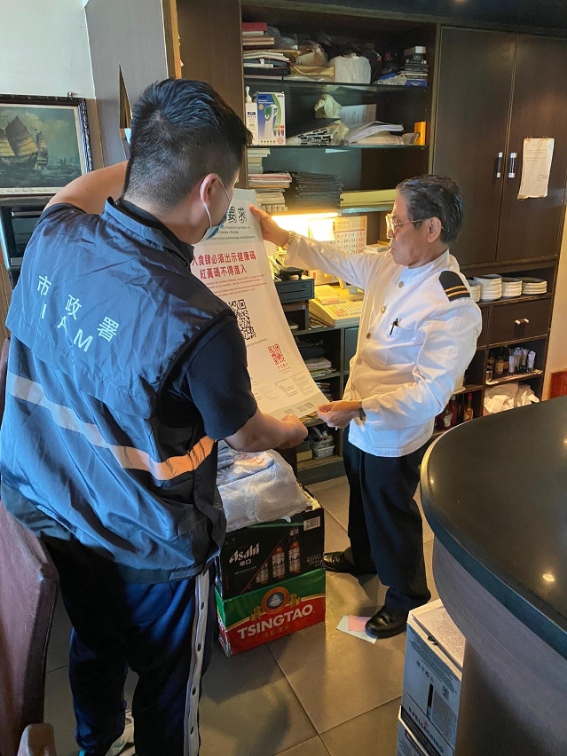 因应新型冠状病毒肺炎疫情发展,市政署适时调整相关防疫措施。自明(九日)起,进入由市政署发牌监管之第四组及第五组饮食及饮料场所时,除须遵守既有的防疫措施外,亦必须出示有效的绿色「澳门健康码」,若「澳门健康码」为「红码」或「黄码」时,则不予进入场所。市政署今透过短讯及派发海报等方式,向场所持牌人及消费者告知有关措施。