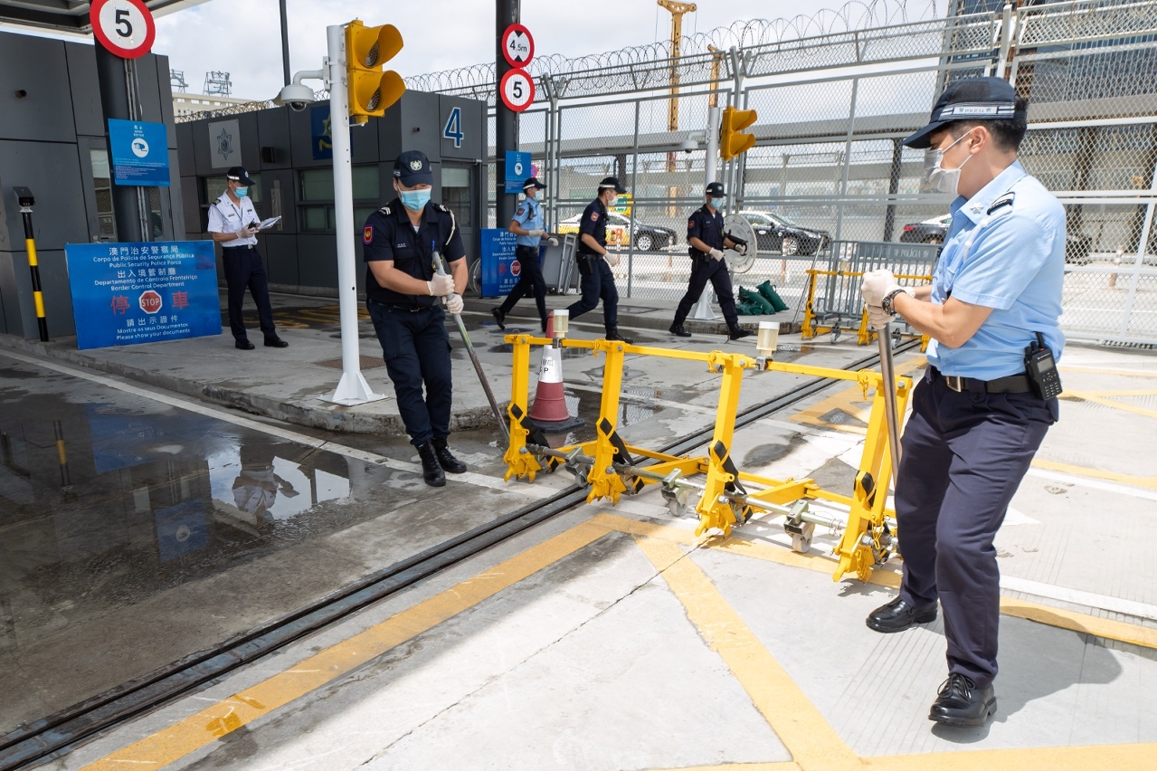 横琴口岸投入运作已逾一年,澳门海关及治安警察局为确保良好的沟通及协作,并强化横琴口岸在发生突发事件时的处置效率及检视应急联动机制,于8月27日上午11时在横琴口岸澳门口岸区入境车道区域举行“防车辆冲关”联合演习。