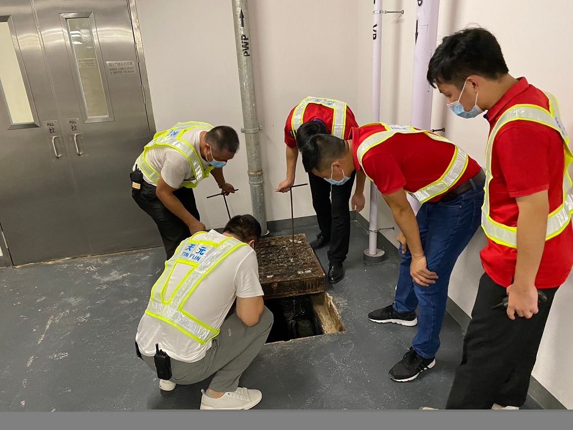 “青茂口岸停车场台风及风暴潮演习”则模拟在悬挂台风讯号或风暴潮警告时,停车场管理公司的工作流程,包括:现场管理员在当眼处张贴等级台风讯号标志;检查场内所有安全通道出入口并张贴封条;检查平台及所有门窗情况,对松动物件加固;测试所有抽水水泵是否正常运作并确保能自动启动;准备防水浸物品,清理水渠及堆放沙包,安装防水闸等。