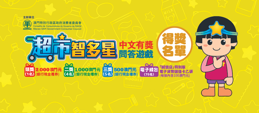 消费者委员会举办的「超市智多星」有奖问答游戏得奖名单已上载至消委会网页 (www.consumer.gov.mo) ,领奖时间由9月13日至10月15日。