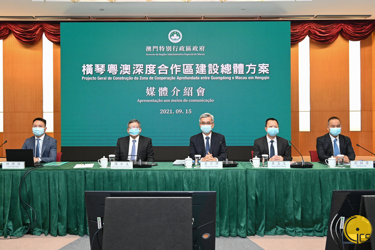 《横琴粤澳深度合作区建设总体方案》刚于近日公布,中央政府、广东省政府和特区政府高度重视,早前已经举办了多场讲解会。为了使澳门社会各界和广大市民进一步清晰了解有关方案的内容,按照行政长官的指示,保安司黄少泽司长于15日联同运输工务司罗立文司长举行第三场媒体介绍会,介绍总体方案中有关通关便利及相关工程方面的情况。