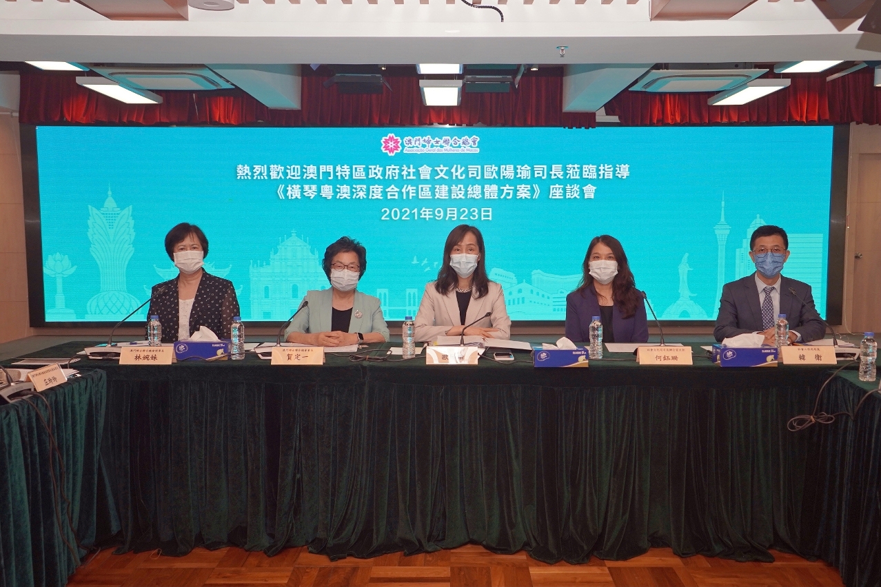 随着《横琴粤澳深度合作区建设总体方案》(下称“《总体方案》”)出台,特区政府正积极向社会宣传和介绍《总体方案》的相关内容,听取社会意见,推动未来各项规划和工作。社会文化司欧阳瑜司长、社会文化司司长办公室何钰珊主任及辖下相关部门代表于9月23日及24日一连两天与相关范畴社团代表进行座谈,介绍《总体方案》中民生建设、社会服务和社会保障等方面内容,与澳门妇女联合总会,以及来自56个医疗、教育、青年发展、文化、体育、社会服务等社团的代表交流,为推进《总体方案》相关工作集思广益,建言献策。