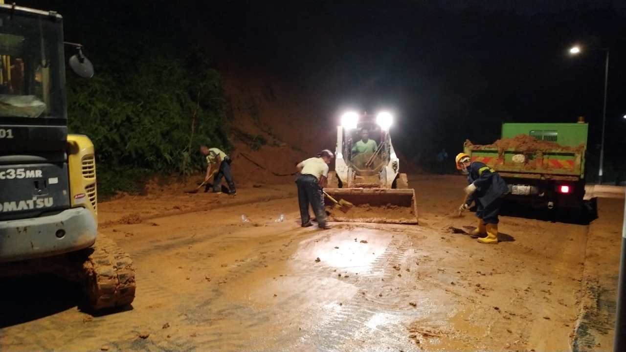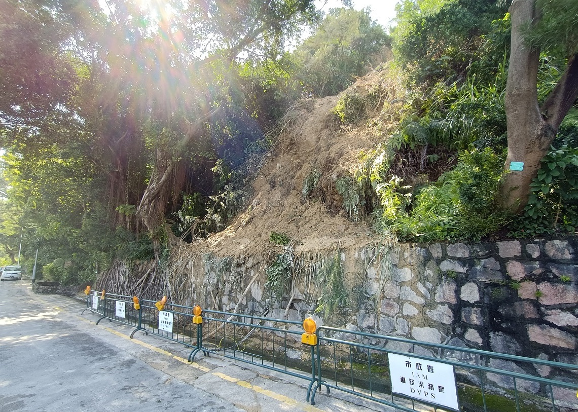 热带风暴「狮子山」影响本澳期间,气象局先后发出黄色及红色暴雨警告,当中红色暴雨警告,持续时间逾七小时。暴雨持续冲刷山体,让路环多处地点发生山泥倾泻,有部分范围甚至占据整条行车路面。市政署随即派员进行清理工作,除以人手外亦出动重型机械对大面积的山泥进行清理,经人员连夜工作,目前除路环乡村马路仍维持封闭外、黑沙马路、竹湾马路及鸡颈马路等多段马路经已基本开通或有限道通车,相关路边近斜坡位置亦已围封并加闪灯,提醒驾驶者留意。