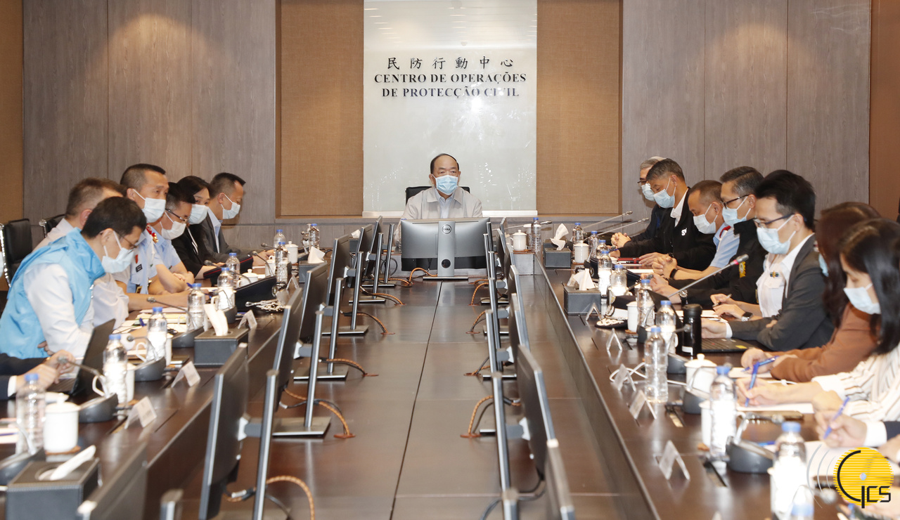 行政长官到达民防中心后,首先巡视控制中心,听取保安司司长、民防中心联合行动指挥官黄少泽,警察总局局长、辅助联合行动指挥官梁文昌,海关关长黄文忠及治安警察局局长吴锦华等汇报应对台风“圆规”的工作部署和对本澳的影响。随后与民防架构21个部门领导举行工作会议。