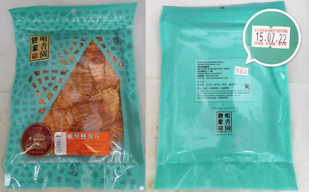市政署于进口商「澳门咀香园饼家」抽取的一款原产地为泰国,经香港供应商提供的预包装「风琴鱿鱼片」样本中,检出含每公斤二千七百六十毫克的防腐剂山梨酸,其含量超出本澳第7/2019号行政法规《食品中防腐剂及抗氧化剂使用标准》之规定。涉事产品每包净重一百一十克,该批次所标示之「此日期前最佳」为2022年7月15日。市政署食品安全厅已即时采取跟进措施,勒令涉事商户停售有关问题批次产品,并追溯产品的来源及销售流向。同时,市政署亦已将涉事产品相关资料通报香港食安部门知悉及跟进。