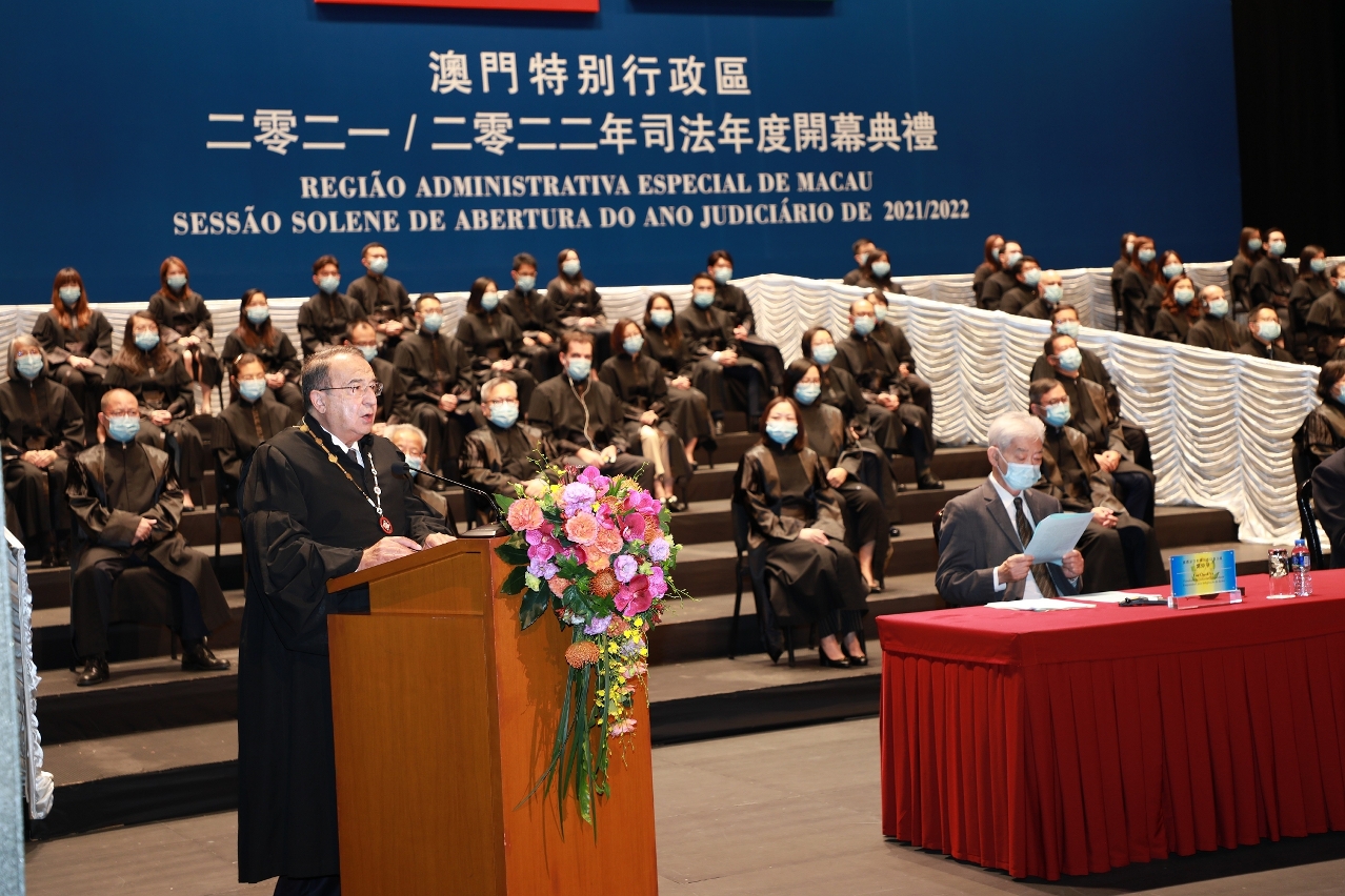 澳门特别行政区2021/2022年司法年度开幕典礼,于10月20日下午3时30分假澳门文化中心综合剧院举行。典礼由行政长官贺一诚主持,立法会主席高开贤、终审法院院长岑浩辉、行政法务司司长张永春、检察长叶迅生、推荐法官的独立委员会主席刘焯华和澳门律师公会理事会主席华年达列席主礼台。