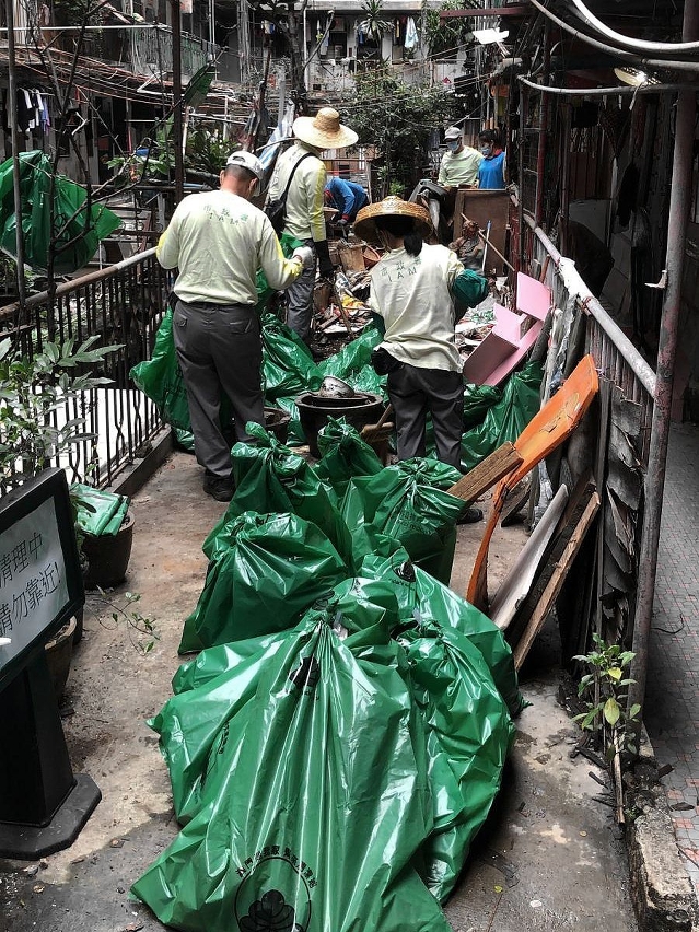 市政署继本周一(18日)对新美安大厦一期清理垃圾及进行消毒后,于本周三(20日)在新美安一期居民顺利完成隔离返回居所后,再度派员协助住户处理大厦内环境卫生问题,经三天工作再清出约八吨废弃杂物和家居垃圾。
