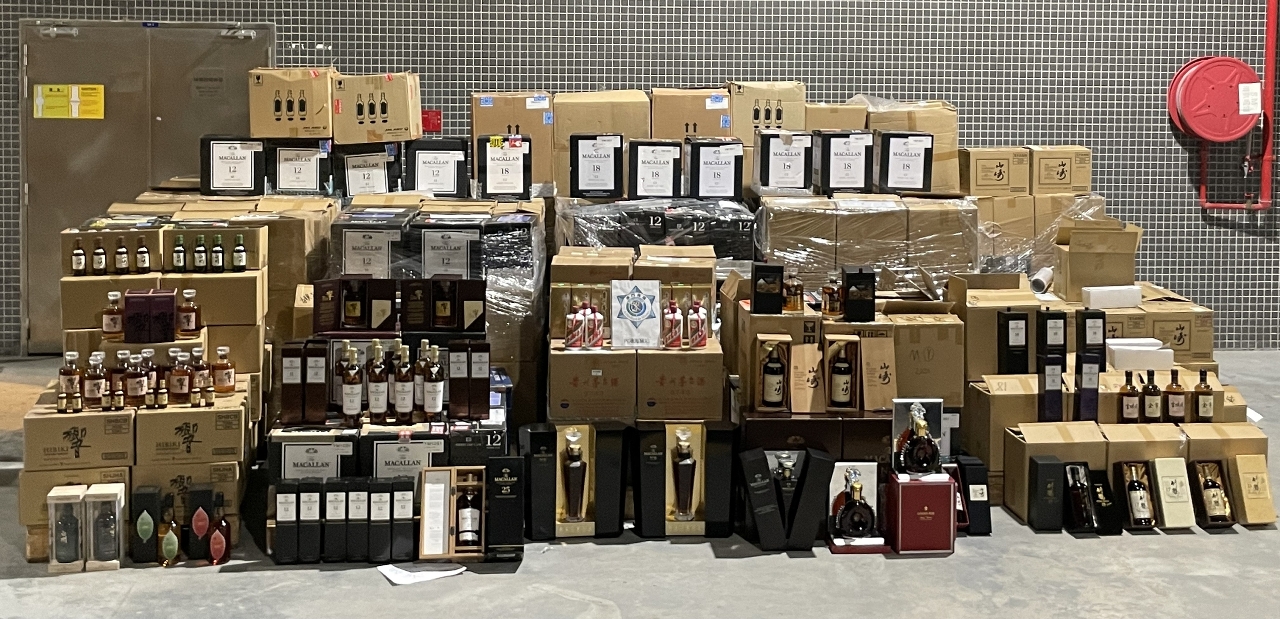 当中涉案名贵烈酒和中国白酒合共6千多件,为近十年来澳门海关缉获最大宗的酒类不法贩运个案。