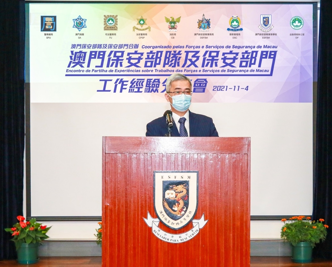 为持续推动警队文化建设,强化现代警务理念,凝聚保安部队及保安部门人员的向心力,2021年11月4日,在澳门保安部队高等学校举行了“2021澳门保安部队及保安部门工作经验分享会”。保安司司长黄少泽、警察总局局长梁文昌、澳门海关关长黄文忠,以及保安范畴辖下各部门的领导和各级人员代表参与。