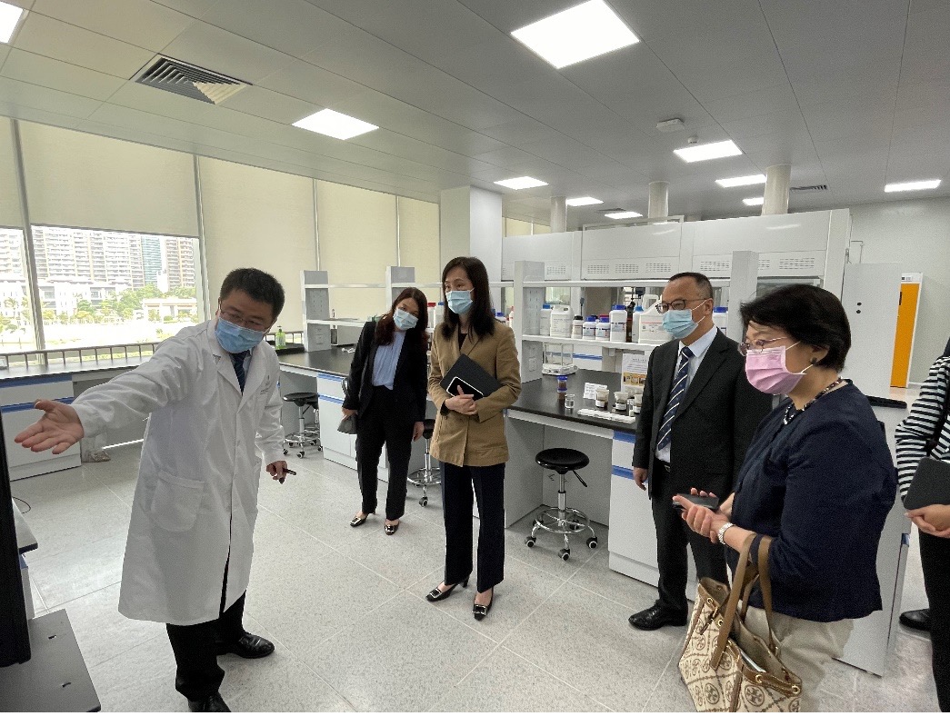 澳门特区政府社会文化司司长、横琴粤澳深度合作区管理委员会副主任欧阳瑜一行于11月5日考察位于横琴粤澳深度合作区的珠海澳大科技研究院(珠研院),获澳大校长宋永华、副校长徐建等热情接待。