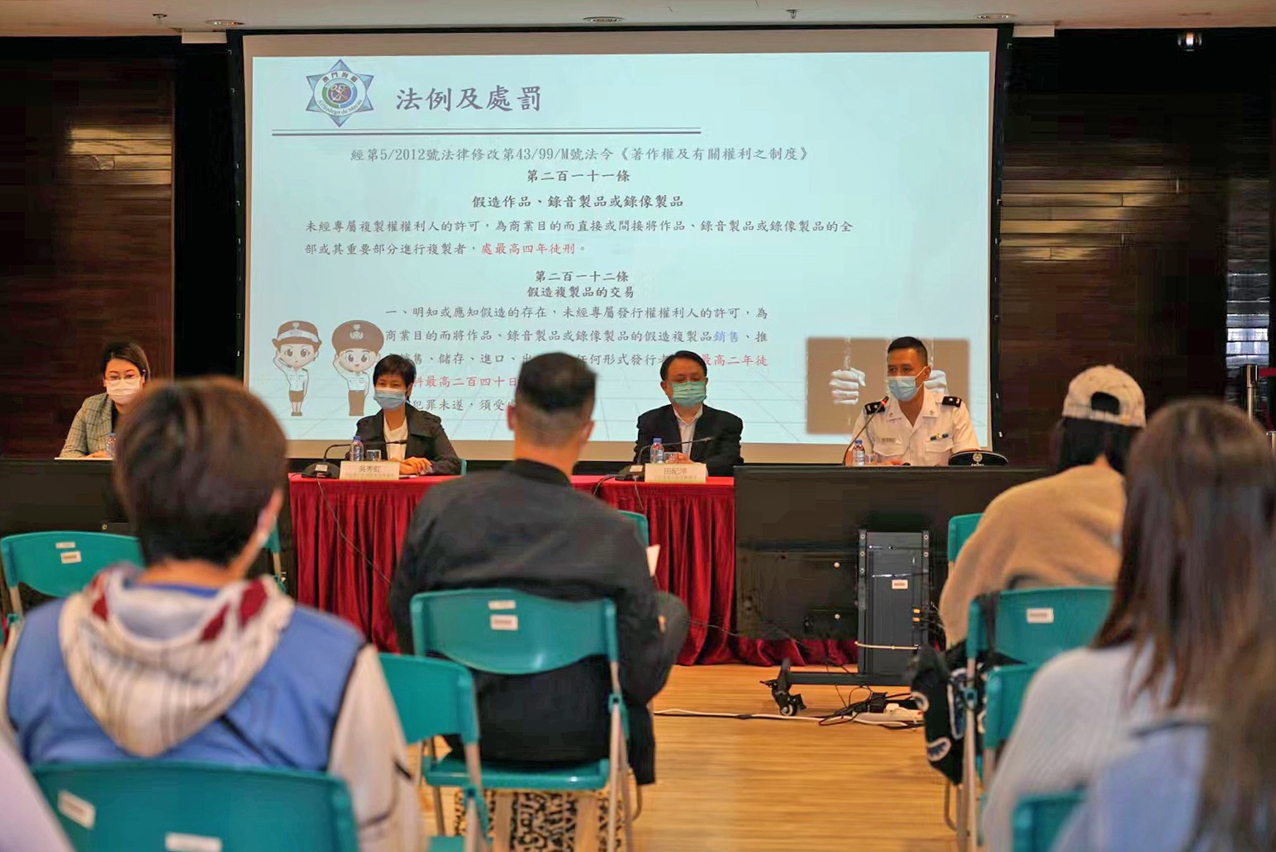 澳门海关知识产权厅人员向参与竞投人士介绍《工业产权法律制度》、《着作权及有关权利之制度》等本澳保护知识产权的法律,讲解受法律保障知识产权内容,以及违反相关法例所面临的处罚制度等,并分享海关过去查获的一些违法个案情况,从而增强竞投者对知识产权保护的意识。