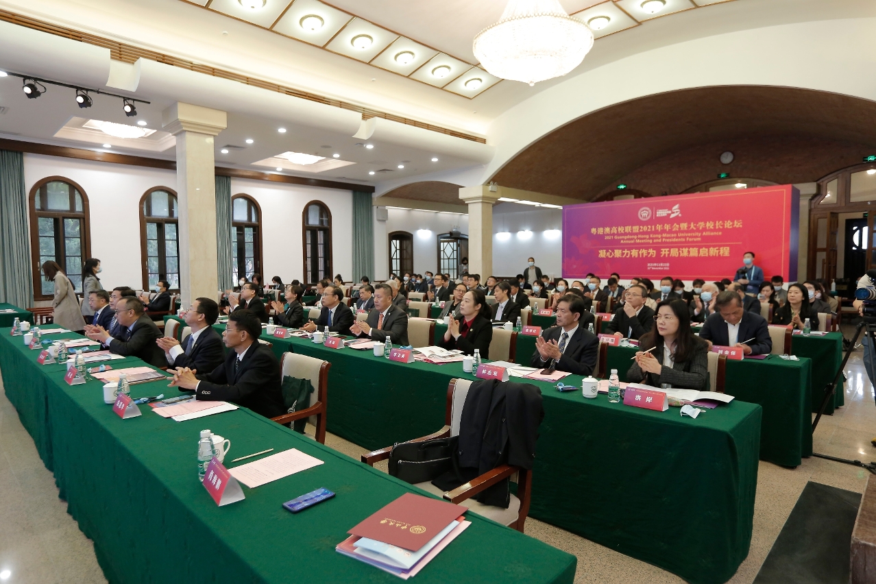 粤港澳高校联盟今(22)日举行“粤港澳高校联盟2021年年会暨大学校长论坛”。在联盟成立五周年之际,来自粤港澳三地的高校领导及代表于线上线下共聚一堂,围绕“凝心聚力有作为,开局谋篇启新程”的主题交流讨论,共同推动粤港澳高等教育的发展。