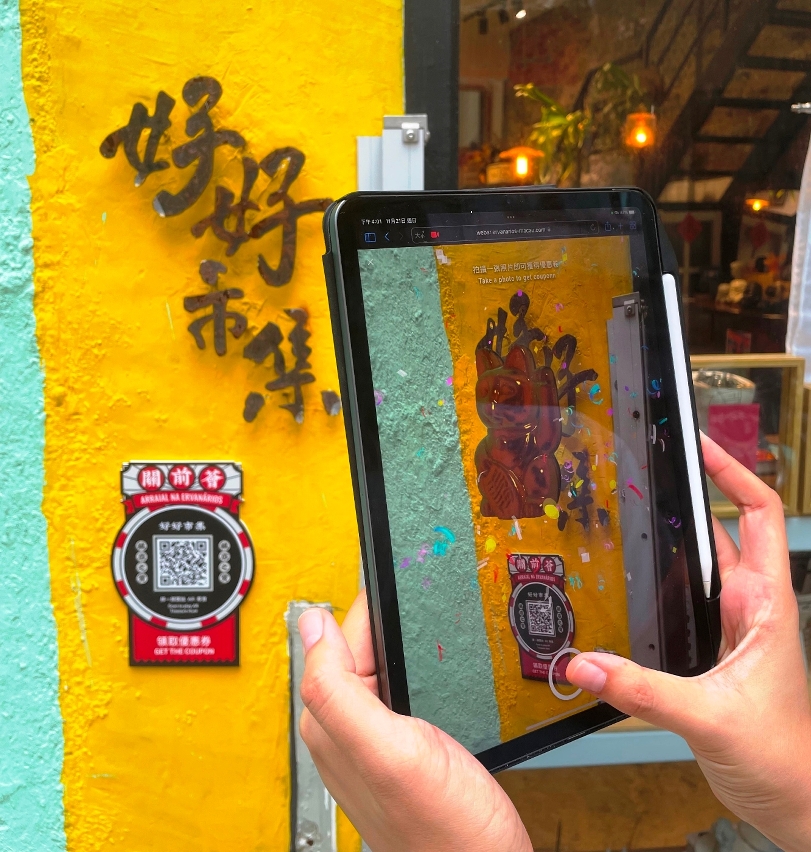 同时,参与“关前荟”活动的商户,于活动期间提供折扣优惠及消费满额赠品等不同类型的优惠,市民与旅客只需在参与商户完成“镇店之宝”AR互动,即可获得电子优惠券,随后在相关店铺核销便可享用优惠。