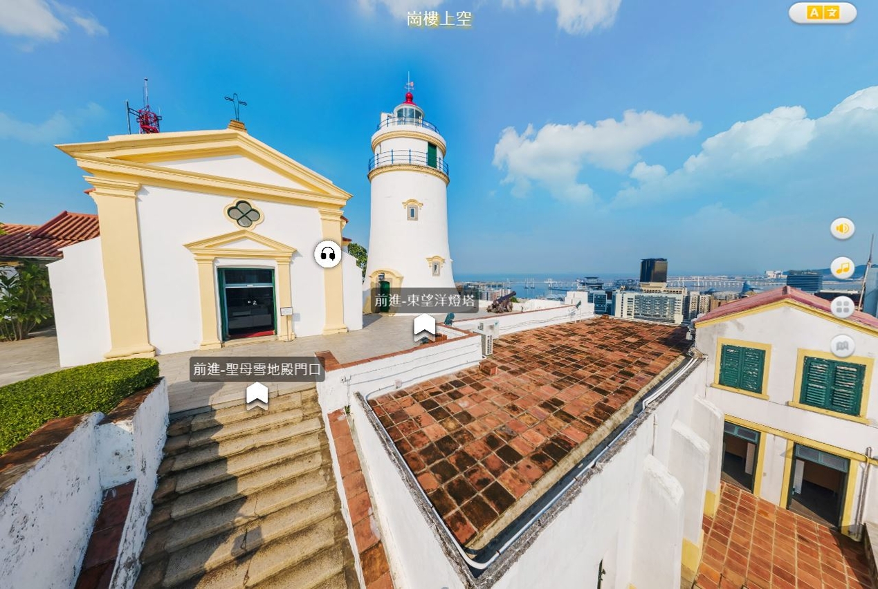 文化局持续推动文化遗产资源的数字化利用,今年率先以澳门历史城区的“东望洋炮台”及“郑家大屋”为试点,增设线上VR虚拟导览功能(IE浏览器不支援此功能),公众只需透过电脑或手机装置,扫描指定二维码(QR Code)或登入澳门世界遗产网(www.wh.mo/cn/)或澳门文化遗产网页(www.culturalheritage.mo)内的“东望洋炮台”及“郑家大屋”专页,即可体验世遗“云参观”功能。