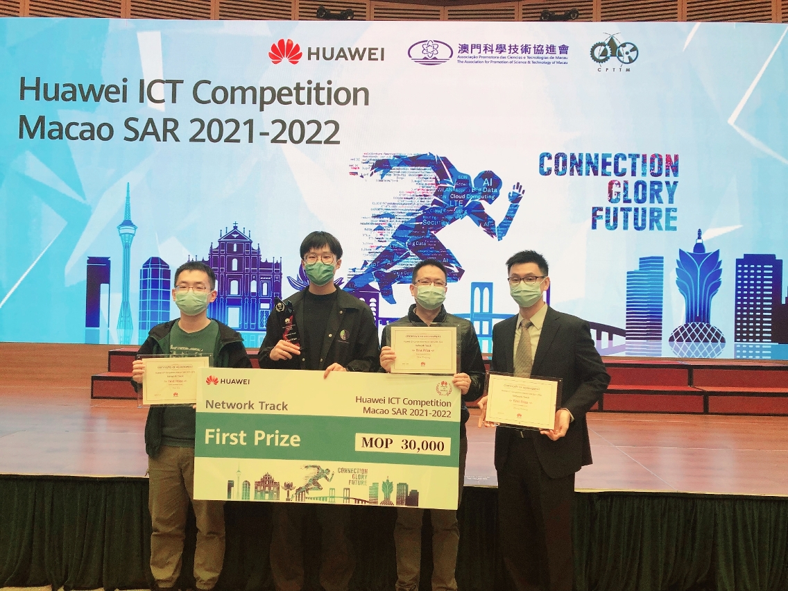 由华为澳门公司、科学技术协进会及生产力暨科技转移中心合办的“华为第六届全球ICT大赛——澳门站”于12月11日举行颁奖礼,澳门理工学院计算机应用技术博士学位课程温宇强、大数据与物联网硕士学位课程姚宇及电脑学学士学位课程张博亮所组成的学生队伍勇夺网络赛道一等奬,并代表澳门晋级亚太区域赛,将与亚太区的顶尖学生一较高下。同时,由计算机应用技术博士学位课程李宗妮、大数据与物联网硕士学位课程吕明媚及电脑学学士学位课程沙俊所组成的学生队伍在云赛道亦获得三等奬佳绩。