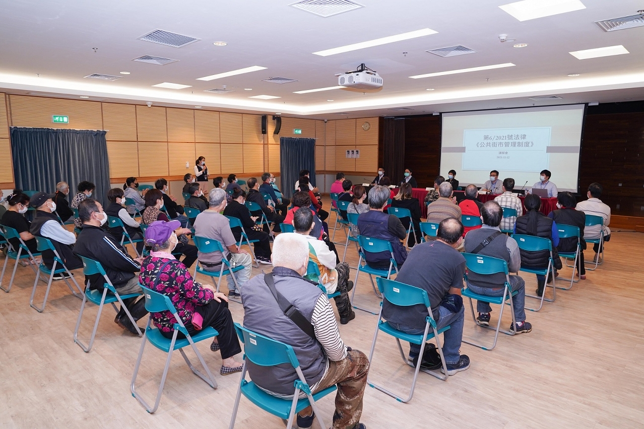 因应第6/2021号法律《公共街市管理制度》将于明年一月一日起生效,市政署于本年十月下旬至十二月上旬举办了十九场讲解会,让有关业界、现有街市摊位承租人,以及在公共街市及小贩大楼内的小贩准照或散檔准照持有人更了解有关新法律的规定,尤其是作为摊位承租人的权利及义务,以及新法律的过渡安排。
