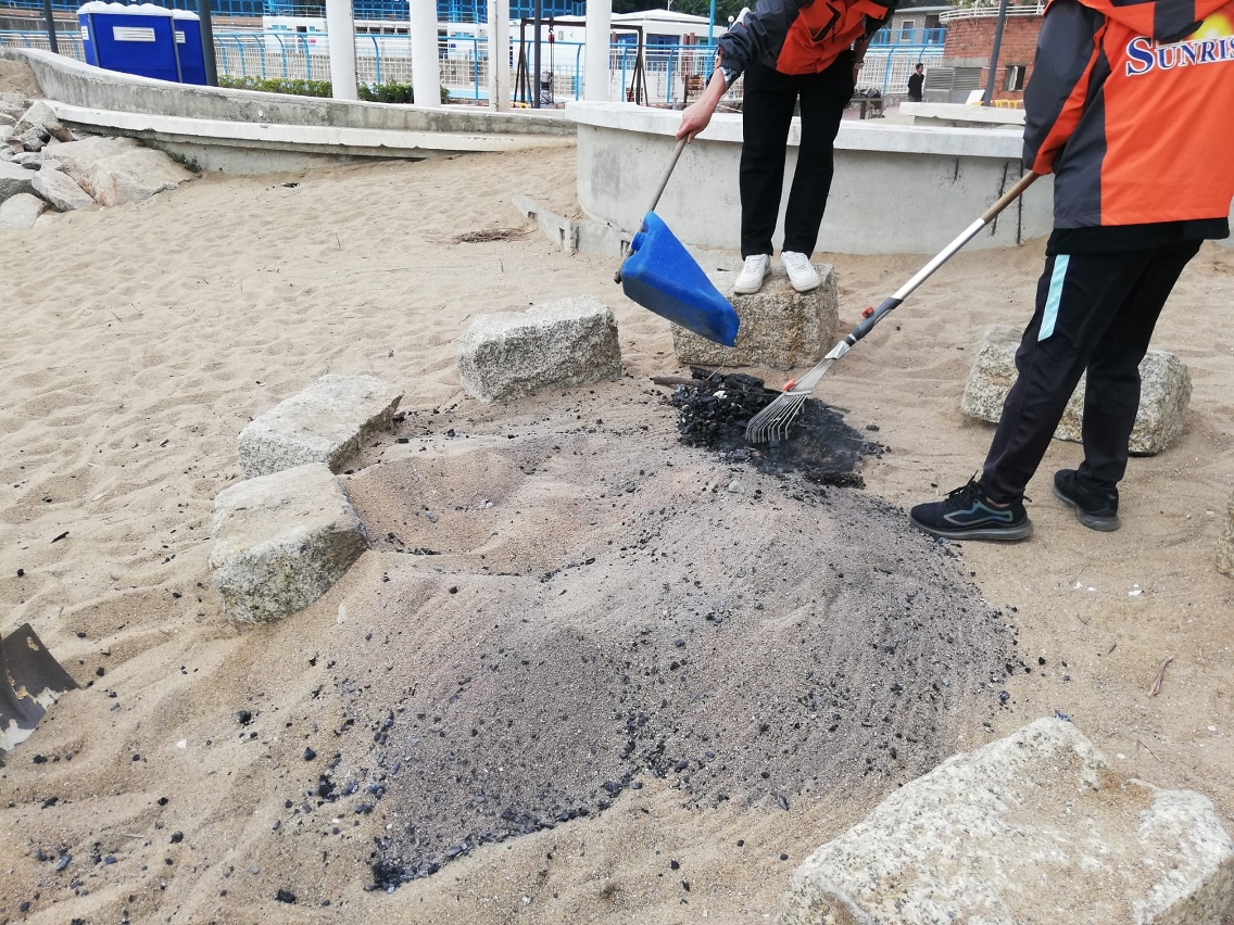 海事局人员近日在海滩巡视时,接连在黑沙海滩北端(近阿婆秧)及竹湾海滩多处发现有生火的痕迹,部分位置更遗留大堆木碳,怀疑有人于夜晚在海滩生火。局方谴责有关行为,不但影响海滩环境和其它使用者的安全,且部分生火位置附近有大量枯草枯木,加之海滩附近风势猛烈,风高物燥,容易引发火警。局方已把有关事件通报警察部门,以便作进一步跟进。
