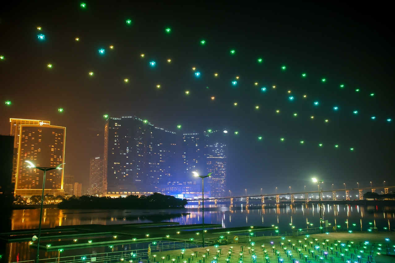 旅游局首次举办的“翱游澳门无人机表演盛会”,在今(25)圣诞夜分别于7时及9时45分在南湾湖畔上演活动最后两场次,点缀澳门夜空,向观众送上佳节祝福,带领大家展开一场圣诞澳门之旅。