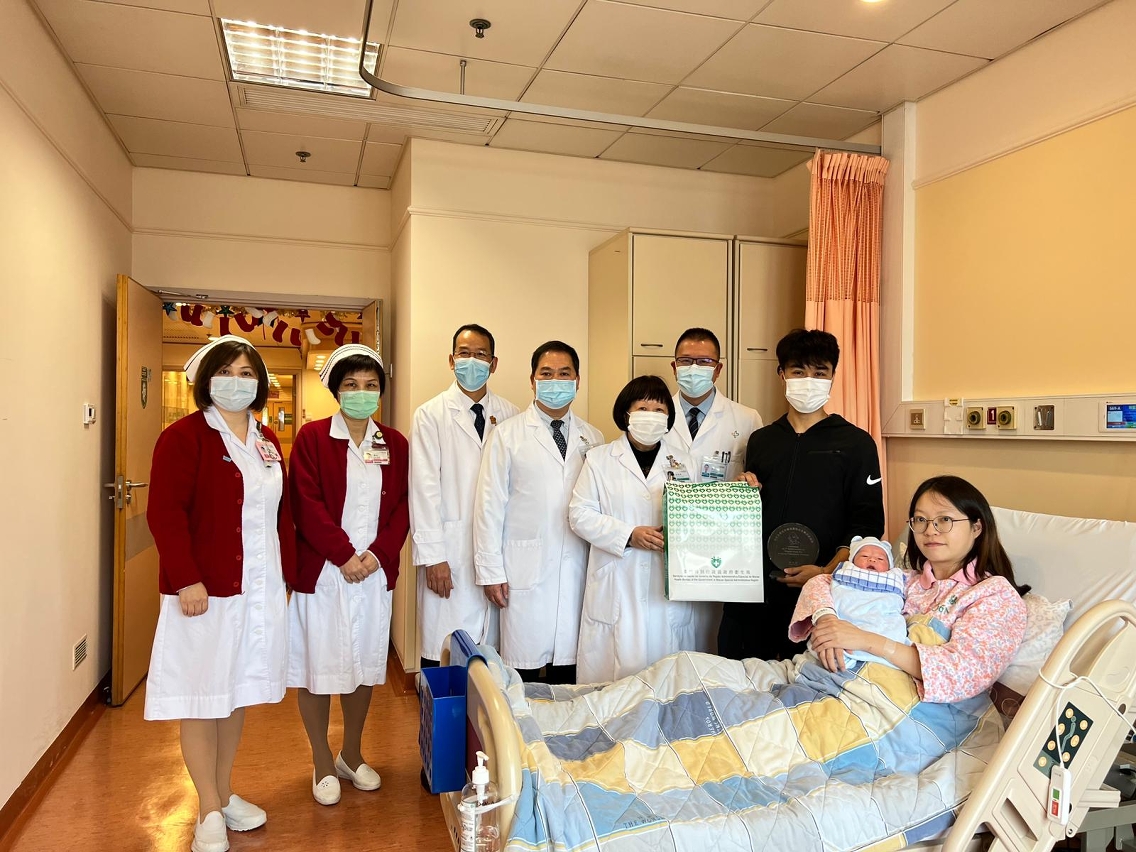 仁伯爵综合医院2022年元旦首位婴儿出生资料:母亲邓女士,澳门居民,第1胎,于凌晨0时01分,剖腹产出生1名男婴,体重3.59kg,其夫为法国籍人仕姓Illias。