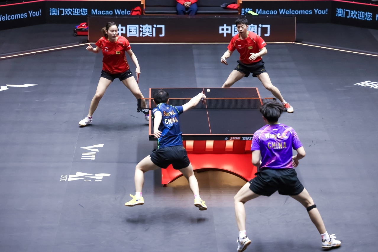 男单十六强赛事,本澳球手张子澄主场迎战赛事首号种子、男子世界排名第一的樊振东,张子澄首两局力争抢分,初段频频抢攻,曾稍为领先对手,但经验丰富的樊振东迅速追回分差,以两局11比9领先局数2比0,沉着应战的张子澄第三局开赛以3比1领先,但随后失误较多,樊振东把握机会以11比6胜出,局数3比0胜张子澄晋级八强。女子世界排名第一的中国陈梦与中国香港的杜凯琹争夺八强席位,陈梦开局不俗,率先以11比8领先首局,落后的杜凯琹第二局重新起步,发挥较前一局稳定,并曾领先10比7最大优势,随后把握陈梦回球失误,以11比7扳平局数1比1;第三局,杜凯琹乘着气势接连抢分,曾领先10比6,惜未能把握得分点,被陈梦力追平10比10后,更被对方以12比10刁时胜局数2比1;第四局,杜凯琹夺回主导,顶着压力以13比11扳平局数2比2;决胜第五局,陈梦愈打愈顺,最终以11比2完胜,局数3比2胜杜凯琹,取得八强一席。