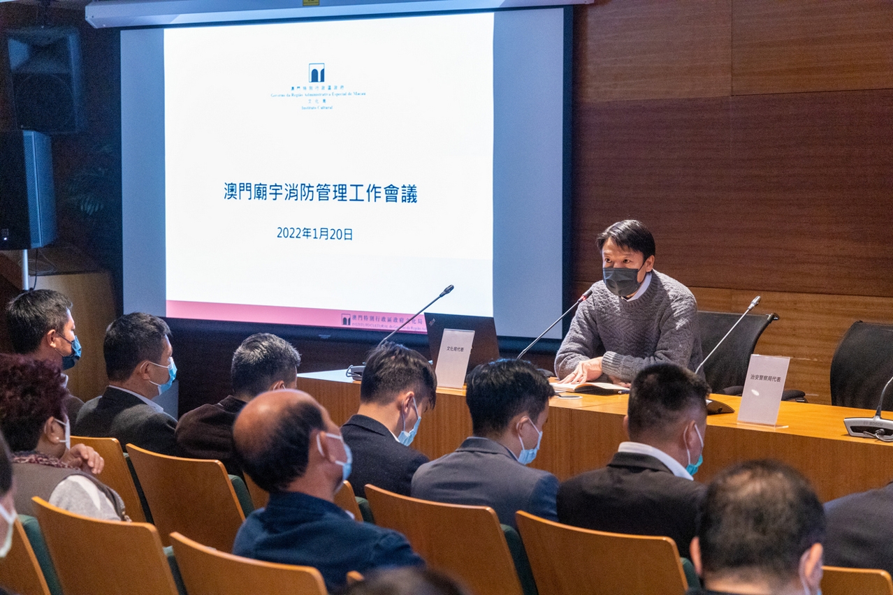 文化局联同消防局及治安警察局日前(1月20日)组织全澳庙宇管理者举行2022年“庙宇消防管理工作会议”,加强管理者于岁晚至农历新年期间祭祀高峰的香火管理及用电安全意识,并特别呼吁庙宇做好人流管理,张贴好并主动提醒进场人士使用“场所二维码”,积极配合政府各项疫情防控工作。