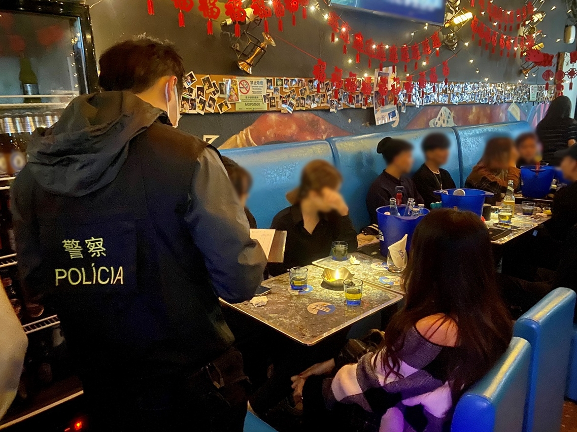 在警察总局统筹下,治安警察局持续开展「冬防行动2022」,确保本澳在岁晚及春节期间保持良好的治安环境。于1月28日至29日凌晨,治安警察局澳门警务厅、海岛警务厅、交通厅及情报厅合共派出50名人员,分别在氹仔市区及澳门各区,巡查了多间卡拉OK、酒吧及食肆,以预防及打击各种不法行为,同时在各区进行查车行动,打击醉驾药驾等违法行为。