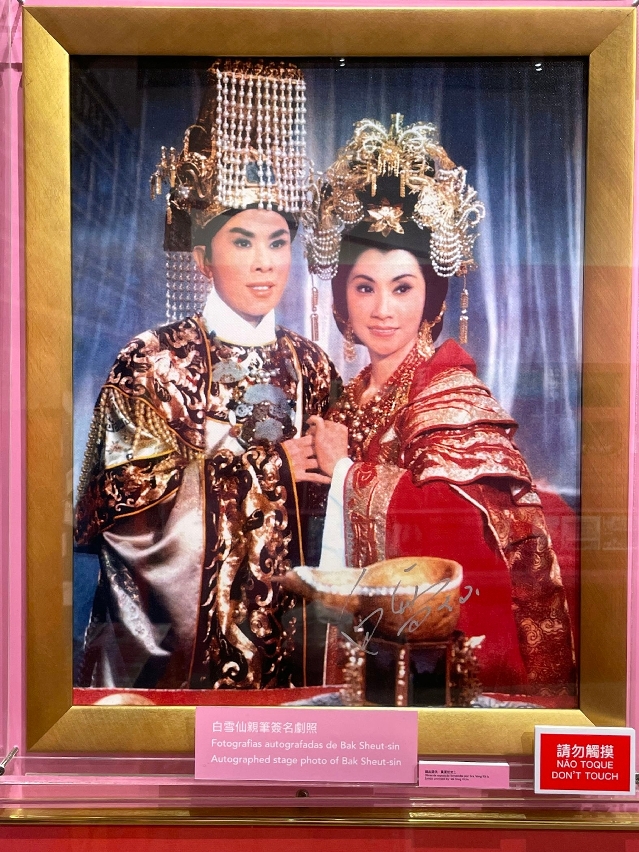 “粤韵悠长”是本澳近年较具规模的粤剧艺术专题展览,展出不少珍品,包括粤剧名伶新马师曾及国家一级演员曾慧穿着过的粤剧戏服、重演十九世纪末盛行的“红船戏班”木制模型、获广州文学艺术创作研究院授权的“国家级非物质文遗名录(粤剧)”证书复印件,以及着名花旦白雪仙亲笔签名相片等,皆是难得一见的粤剧藏品。