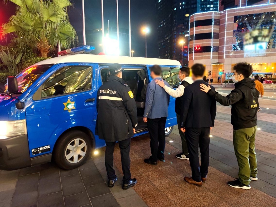 在警察总局统筹下,治安警察局持续开展「冬防行动2022」,确保本澳在岁晚及春节期间保持良好的治安环境。于2月4日至5日凌晨,治安警察局辖下澳门警务厅、海岛警务厅、情报厅、交通厅及特警队联同警犬组合共派出54名人员,分别于澳门北区、中区、氹仔市区及路环市区截查可疑人士,并巡查了澳门多间游戏机中心,以预防及打击各种不法行为;同时在各区进行查车行动,打击醉驾药驾等违法行为。