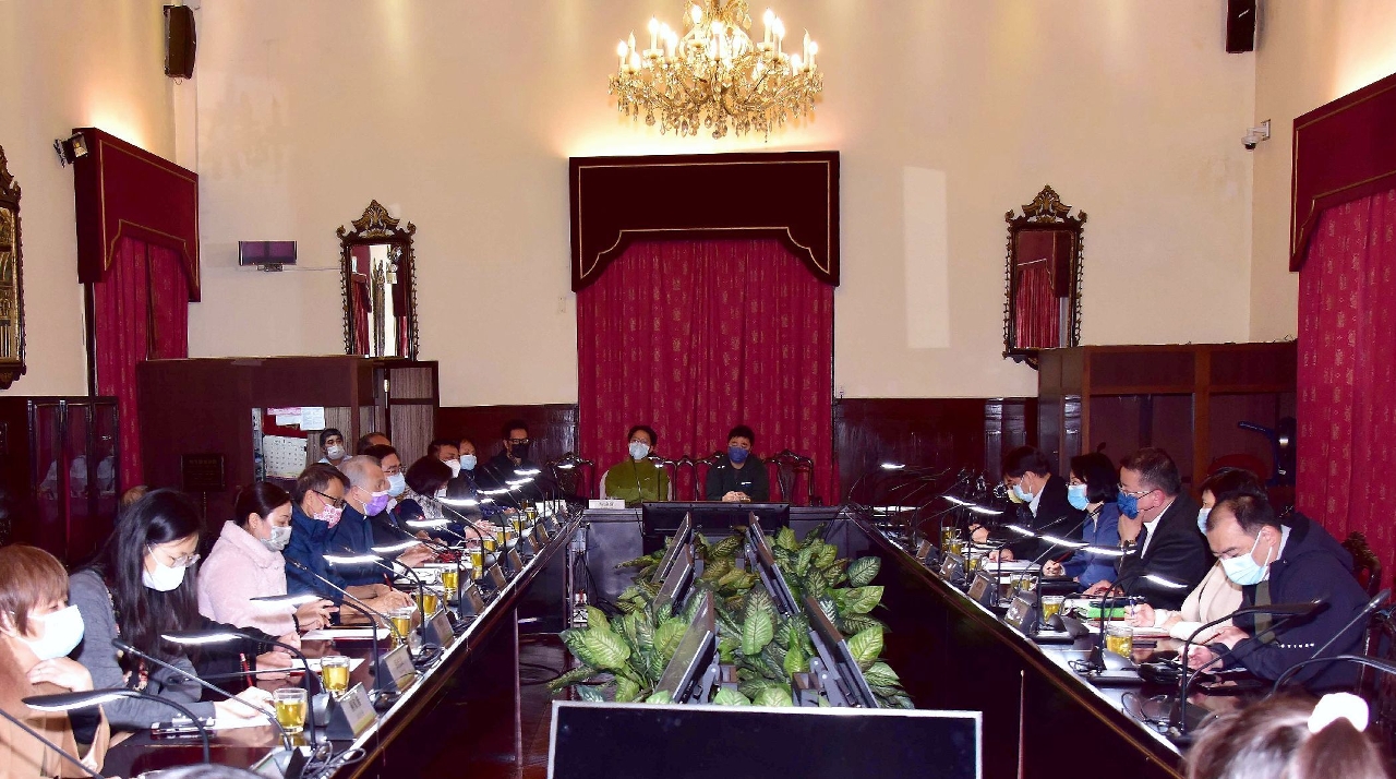 市政署市政管理委员会主席戴祖义、副主席柯岚、委员吴秀虹,今(14)日与澳门供应商联合会理事长李杰兴、副会长王金源、莫兆基、杨淑英、澳门冻肉食品业商会创会会长梁和萍、理事长梁仕友、监事长陈楚南、澳门鲜鱼行总会副会长余国华、两南公司等商会及行业代表举行会议。双方就如何稳定经香港转运至澳门的食品供应、强化落实防疫措施等交流意见。