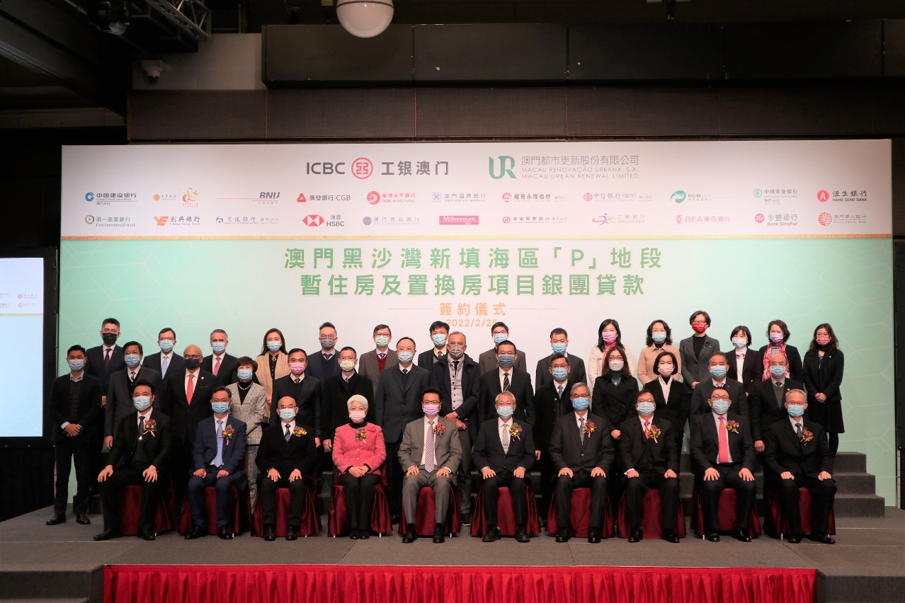 「黑沙湾新填海区『P』地段暂住房及置换房项目银团贷款签约仪式」今(25日)举行,澳门都市更新股份有限公司(下称:都更公司)与中国工商银行(澳门)股份有限公司(下称:工银澳门)代表签署合同,以银团贷款融资方式建设项目。