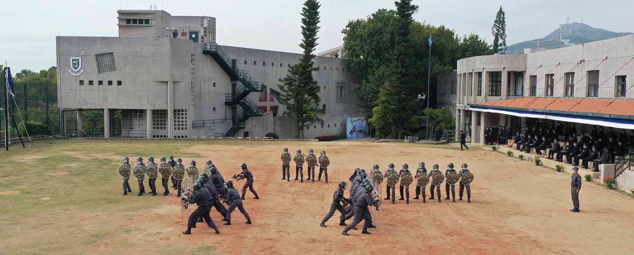 最后,学员们列队行进向保安司司长及嘉宾致敬,并以一场精彩的花式枪及防暴阵式演示为毕业典礼拉下帷幕,当中高度展现了学员团结协作的精神,以及志气高昂的良好风貌。