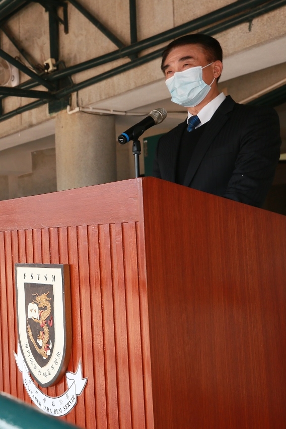 黄子晖校长在毕业典礼致辞时表示,学员要贯彻落实保安当局提出的各项警务理念,构建现代化警政模式,具备“奉公守法,廉洁忠诚”的坚定信念。另一方面,新冠肺炎疫情无阻培训工作,课程从各方面给予学员充分培养,学员要毋忘初心,认真履行职责,面对困难时,不退缩,不放弃,勇于接受挑战,展现澳门保安部队及保安部门专业精干的一面;并勉励学员紧记“精于学‧敏于事"的校训,持续进修,用知识充实自己,从而能更好履行职责,服务社会。