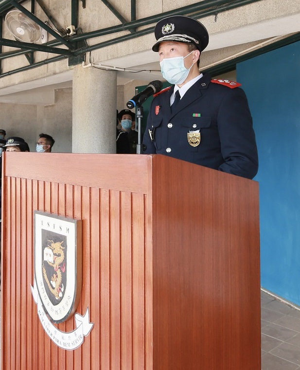 接着,惩教管理局程况明局长在致辞中表示,惩教工作充满挑战,任重而道远,特别是在新冠肺炎疫情下更加艰巨及复杂,希望狱警学员牢记初心使命,遵循“主动警务”、“社区警务”和“公关警务”三个新型警务理念,竭诚履职。同时向学员们提出三点要求:一是忠诚尽责,廉洁奉公,遵守狱警职业道德,维护狱警队伍的尊严、声誉及专业形象;二是遵守纪律,服从命令,发挥团队精神,体现狱警队伍应有的素质;三是将学到的专业知识和技能应用到工作中,并继续努力学习,与时俱进,不断提高执法水平,为澳门特区的长治久安作出贡献。