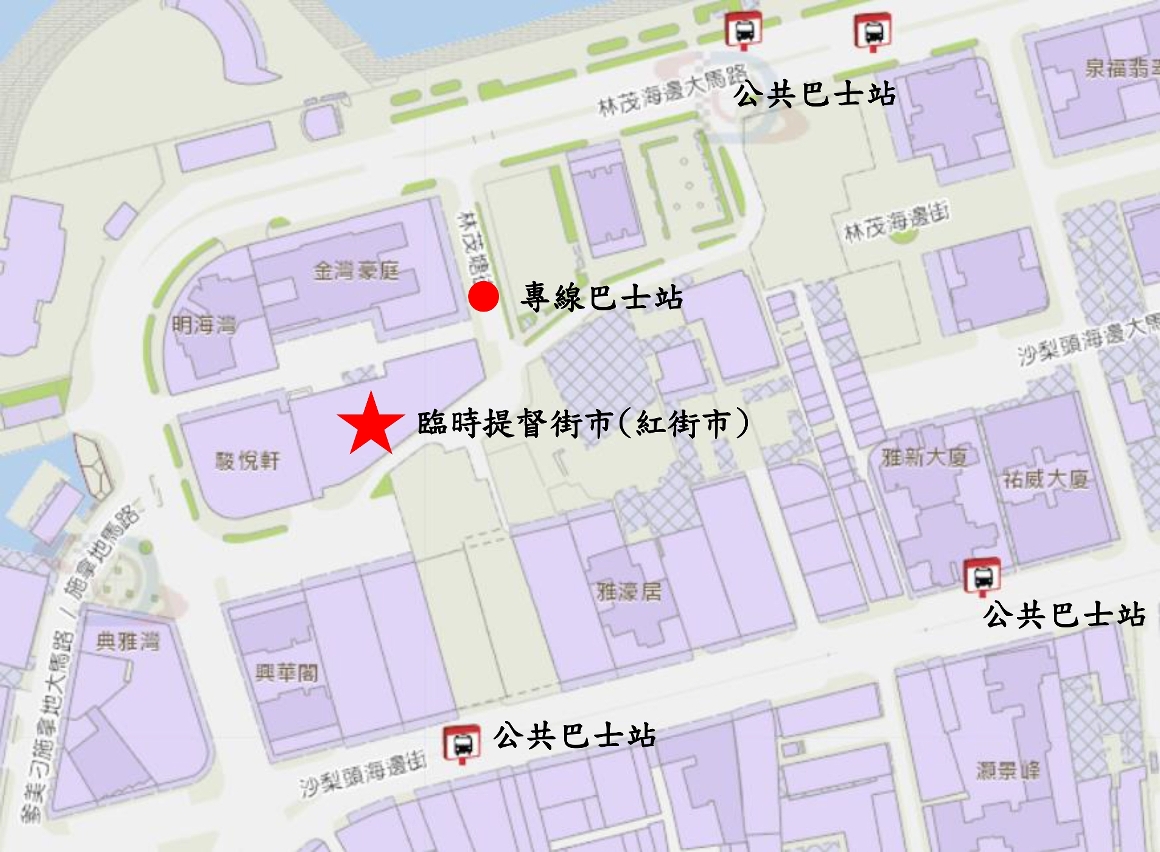 市政署将以试行两月形式设专线巴士来回高士德区及临时提督街市,免费接载居民前往。专线巴士由每天早上九时至中午十二时、下午三时三十分至下午六时三十分,沿途停靠高士德/连胜巴士站(太平电器门口)、观音堂前、士多鸟拜斯大马路华仁中心对面、高士德红街市巴士站(中国银行门口),再回到林茂塘街临时提督街市。试行两个月后,市政署将据乘搭人次等数据评估效益。