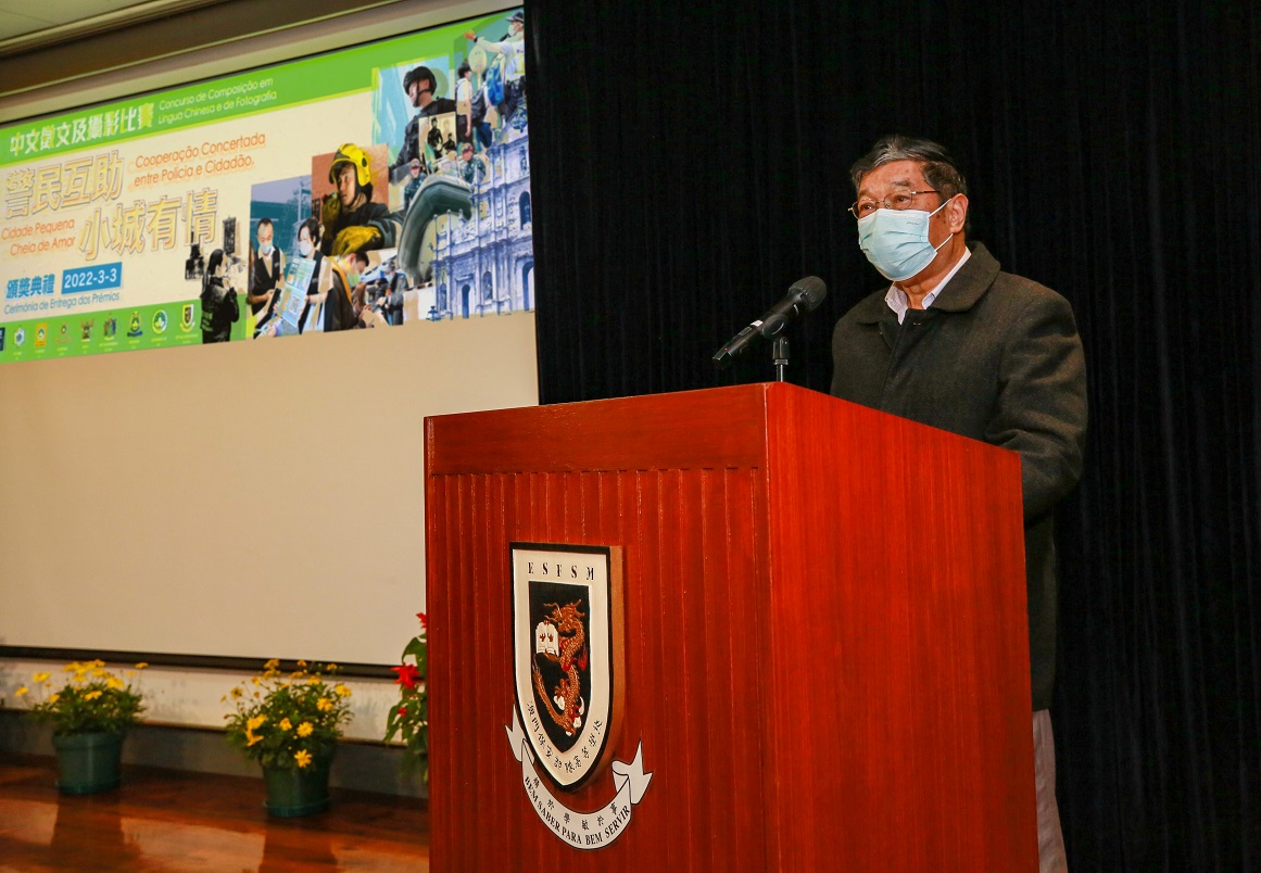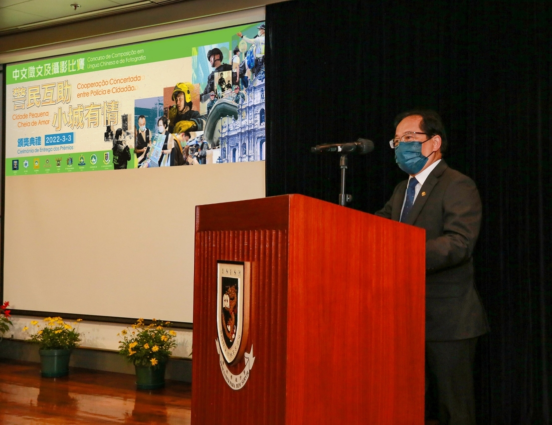 “警民互助,小城有情”中文征文及摄影比赛颁奬典礼,于本年3月3日在严格遵守卫生当局的防疫指引下,在澳门保安部队高等学校礼堂举行;典礼由保安司司长黄少泽主礼,并邀请中联办警务联络部宋东翔副部长、警察总局梁文昌局长、澳门海关黄文忠关长、保安部队及保安部门的领导、赛事评委、各奖项得奖者,以及高等院校和中学代表等嘉宾出席。