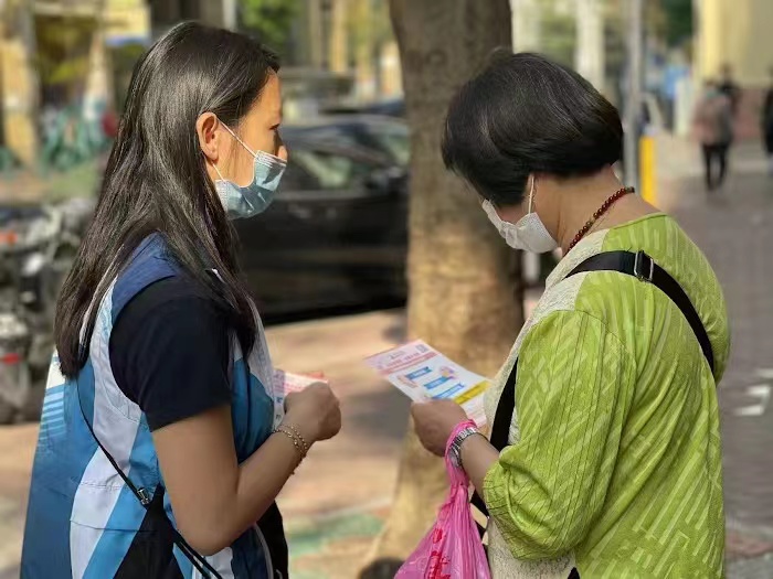为将关爱互助、逆境自强等正面讯息带到社区,社会工作局联同“台山区分区协作联网”成员于4月21日下午,在黑沙环、佑汉、望厦及新填海区一带进行“存希望 展关爱”社区关怀活动,有40多名工作人员和义工参与行动,为约2,500名居民推广有关信息。协作单位包括工联北区综合服务中心、街总望厦社区中心、街总佑汉社区中心、街总黑沙环社区服务中心、明爱迎雁轩、循道卫理建华家庭服务中心、循道卫理迎朗计划和救世军喜乐家庭综合服务中心。