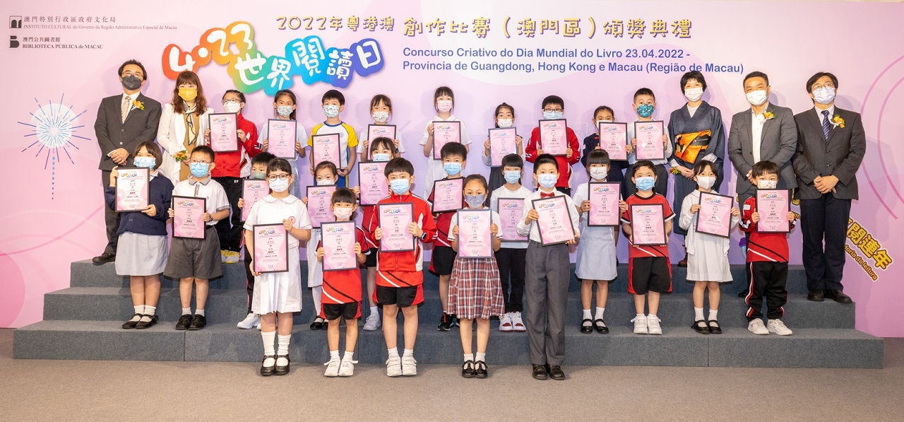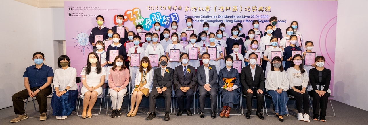 由文化局公共图书馆、香港公共图书馆、广东省立中山图书馆及深圳图书馆合作举办2022年粤港澳“4.23世界阅读日创作比赛”,澳门区颁奖礼于4月23日(星期六)在南湾旧法院大楼举行,向得奬者颁发奬状以及向各得奖者学校致送纪念座,并于现场展出得奖作品,气氛热络。
