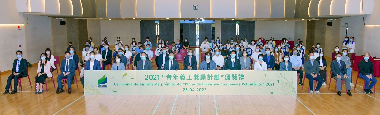 为表扬及肯定澳门青年义工在过去一年对社会作出的贡献和承担,鼓励社会各界和青年加入义工服务行列,教育及青年发展局于2022年4月23日(星期六)下午假澳门圣保禄学校礼堂举办2021“青年义工奖励计划”颁奖礼。出席今届颁奖礼的有教青局副局长阮佩贤、代副局长黄嘉祺,警察总局顾问刘中志、青年事务委员会委员、加入该计划的公共部门及公营机构代表、社会团体代表、学校代表和一众青年义工。