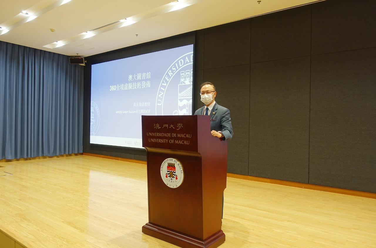 黄承发在发布会上作技术介绍时指出,澳大图书馆是澳门首间引入创新科技360全境虚拟导览技术的图书馆,由专业团队利用航拍机及专业相机进行实境拍摄,再通过专业软件对图书馆进行实境建模,并制作成360度环景立体空间,以实境的效果把图书馆外观及内部的藏书空间、展览空间及藏品呈现在读者眼前。这是澳大亚太经济与管理研究所的智慧旅游项目,旨在以数位方式记录、存檔和分享澳门的文化建筑,并确保这些资讯在未来能够被持续使用。