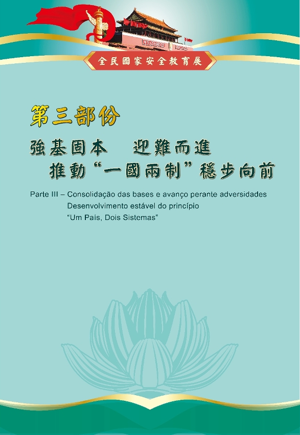 展览在第三部分的内容,以“强基固本 迎难而进 推动‘一国两制’稳步向前”为主题,阐述了澳门特区在2021年有关推动维护国家安全方面的各项重点工作。