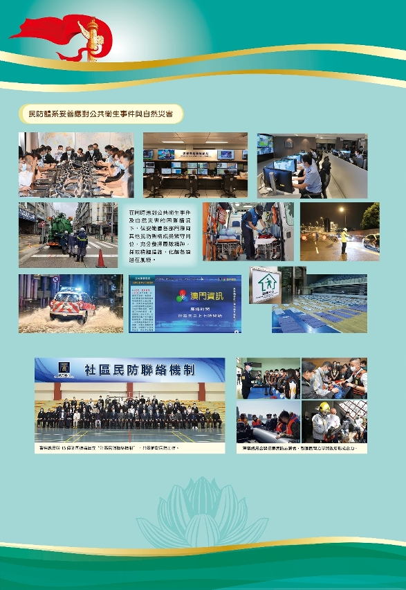 展览中,也展示了2021年两次进入即时预防状态期间,民防架构成员各司其职,共同抗击疫情,社会各界和广大市民积极支持和配合特区政府的防疫措施,迎难而上,共同应对公共卫生事件与自然灾害的事件。