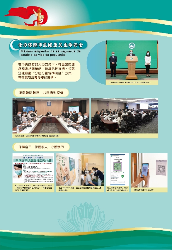 为防控新冠疫情在澳门社区传播,特区政府妥善应对,采取了多项举措,包括:迅速启动了分区分级精准防控方案,加强澳珠联防联控,共同应对疫情,市民积极响应接种新冠疫苗,去年也先后进行了三次全民核酸检测。做好各项防疫工作的同时,特区政府致力提振经济,推出一系列保就业、稳经济、顾民生的措施。