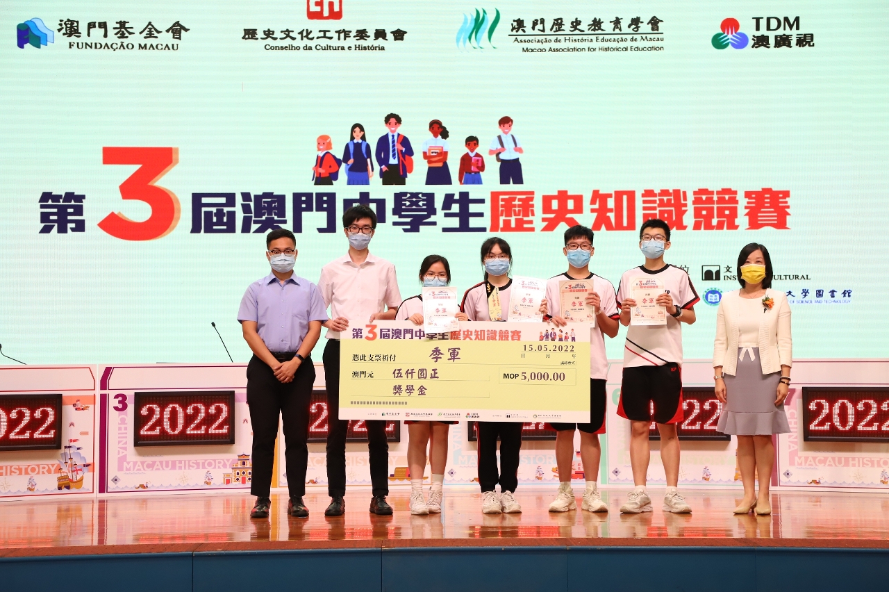 由澳门基金会及其历史文化工作委员会、澳门历史教育学会及澳门广播电视股份有限公司联合主办,文化局及澳门科技大学图书馆支持之“第三届澳门中学生历史知识竞赛”准决赛及决赛已于2022年5月15日(星期日)假濠江中学附属英才学校顺利举行,本届赛事共吸引了本澳33所学校、共151支队伍报名参加,反应相当踊跃。