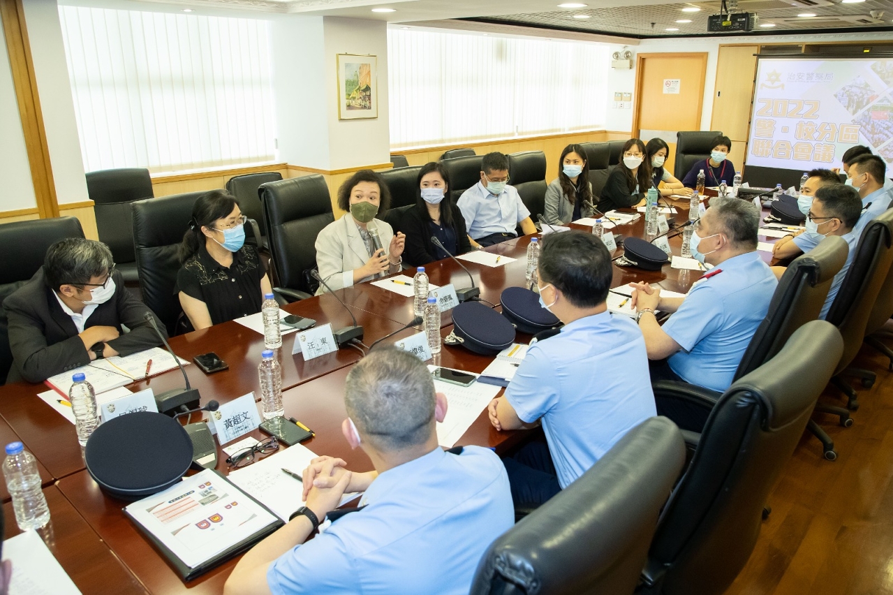 青年事务是治安警察局重点工作之一,本局透过建立「警‧校联络机制」(以下简称「机制」)与学校互通警情,共同推动及发展青年事务。为深化该机制的联络与合作,本局分别于5月16日至5月20日下午举办了「2022警‧校分区联合会议」,邀请本澳69间非高等教育学校代表参与,共同探讨「机制」的优化、校园周边治安及交通情况,以及日后合办各类有利青年学生身心健康活动等事宜。