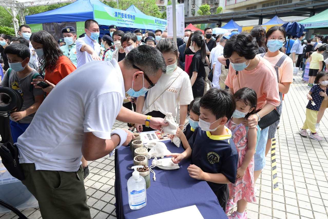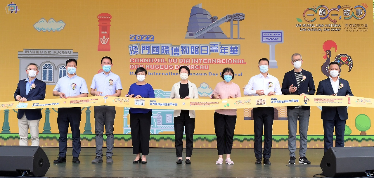 为响应5‧18国际博物馆日,澳门20间博物馆联合举办文博界年度盛事“2022澳门国际博物馆日嘉年华”,开幕仪式于今天(5月29日)在佑汉街市公园举行,并进行“一馆一故事:以声音表达博物馆的力量”播客比赛颁奖仪式。活动现场亦设有澳门旅游吉祥物麦麦表演和少年咏春武术助兴,另有摊位游戏、工作坊、导赏及微信游戏抽奖等活动,缤纷多元,吸引市民踊跃参与,气氛热络。