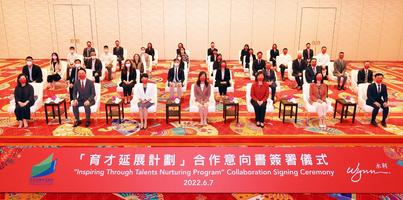 在社会文化司司长欧阳瑜、中央人民政府驻澳门特别行政区联络办公室教育与青年工作部部长徐婷以及永利渡假村(澳门)股份有限公司(以下简称“永利”)总裁兼常务董事陈志玲的见证下,教青局局长龚志明和永利澳门有限公司人力资源高级副总裁莫慕贤于2022年6月7日签订亲职教育方面的合作意向。