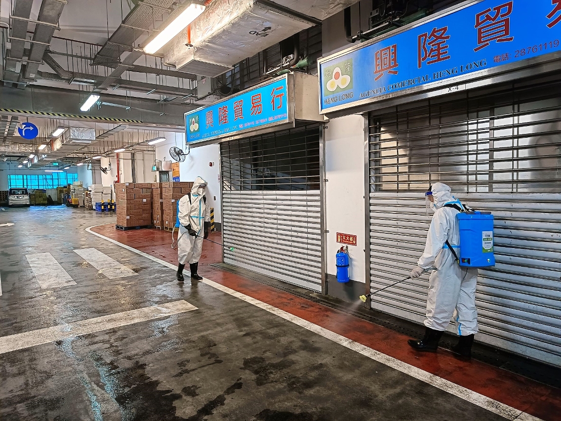 自本波疫情爆发以来,市政署持续加强批发市场的抗疫措施,运营管理单位南粤公司也严格按照市政署的要求和工作指引,不断加强批发市场的清洁消毒。除要求进入批发市场的司机、商户、工作人员均需扫码登记外,还每天定时对电梯、卫生间、排水渠、垃圾箱等重点区域进行清洁消毒,更安排专人于市场每天休市后对所有楼层进行全面清洁消毒,确保市场环境安全卫生,保障澳门市民菜篮子安全。