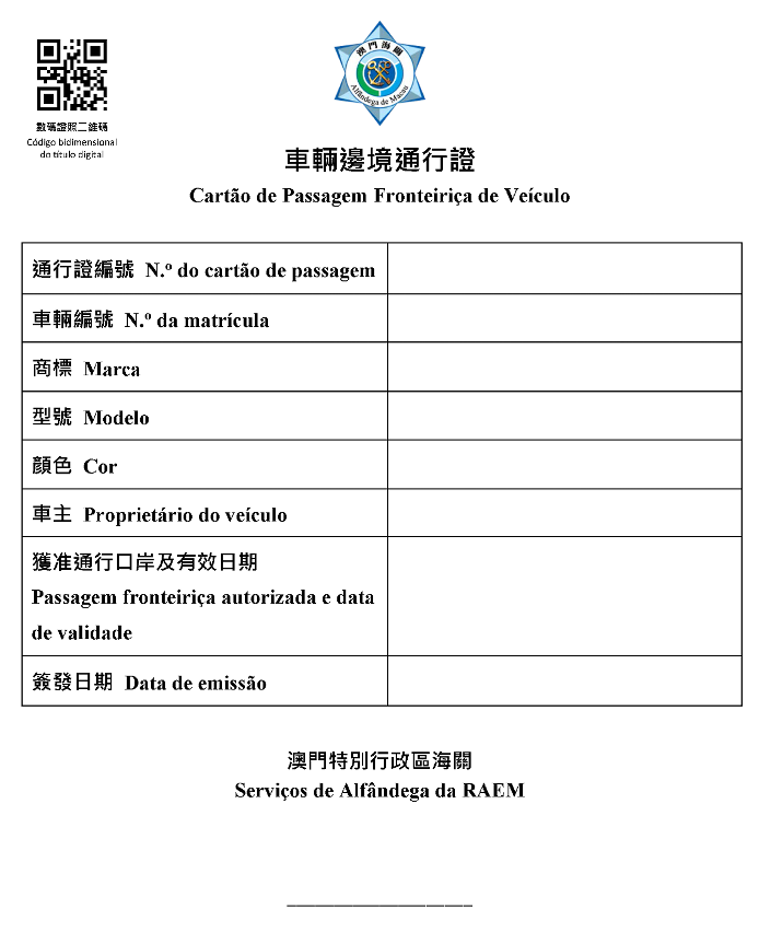 为配合澳门特区政府电子政务的发展,根据第28/2022号行政命令,「车辆边境通行证数码证照」将于2022年7月14日生效,而现有的纸本版「车辆边境通行证」继续有效,但必须于2023年7月31日前作出更换。